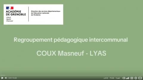 Suite à la création du RPI Coux - Masneuf à la rentrée 2025, voici un retour en vidéo sur ce projet de regroupement réussi, avec les témoignages de l'Inspectrice de Circonscription - Ingrid Lavallée, les directrices des écoles de Coux Masneuf et Lyas - Magali Rossetti et Mélissa Brielle, de parents d'élèves et d'enfants des deux écoles.